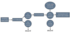 Ethnographymatters has a great post by Tricia Wang that talks about how ethnographers contribute (often invisible) value to organizations by showing what shouldn’t be built, rather than necessarily improving a product that already has a host of assumptions built into it. And so it was with this research project that I realized early on that a ranking system conceptualized this way would be inappropriate – for the single reason that along with characteristics for determining whether a source is accurate or not (such as whether the author has a history of presenting accurate news article), there are a number of important variables that are independent of the source itself. On Wikipedia, these include variables such as the number of secondary sources in the article (Wikipedia policy calls for editors to use a majority of secondary sources), whether the article is based on a breaking news story (in which case the majority of sources might have to be primary, eyewitness sources), or whether the source is notable in the context of the article (misinformation can also be relevant if it is widely reported and significant to the course of events as Judith Miller’s NYT stories were for the Iraq War).